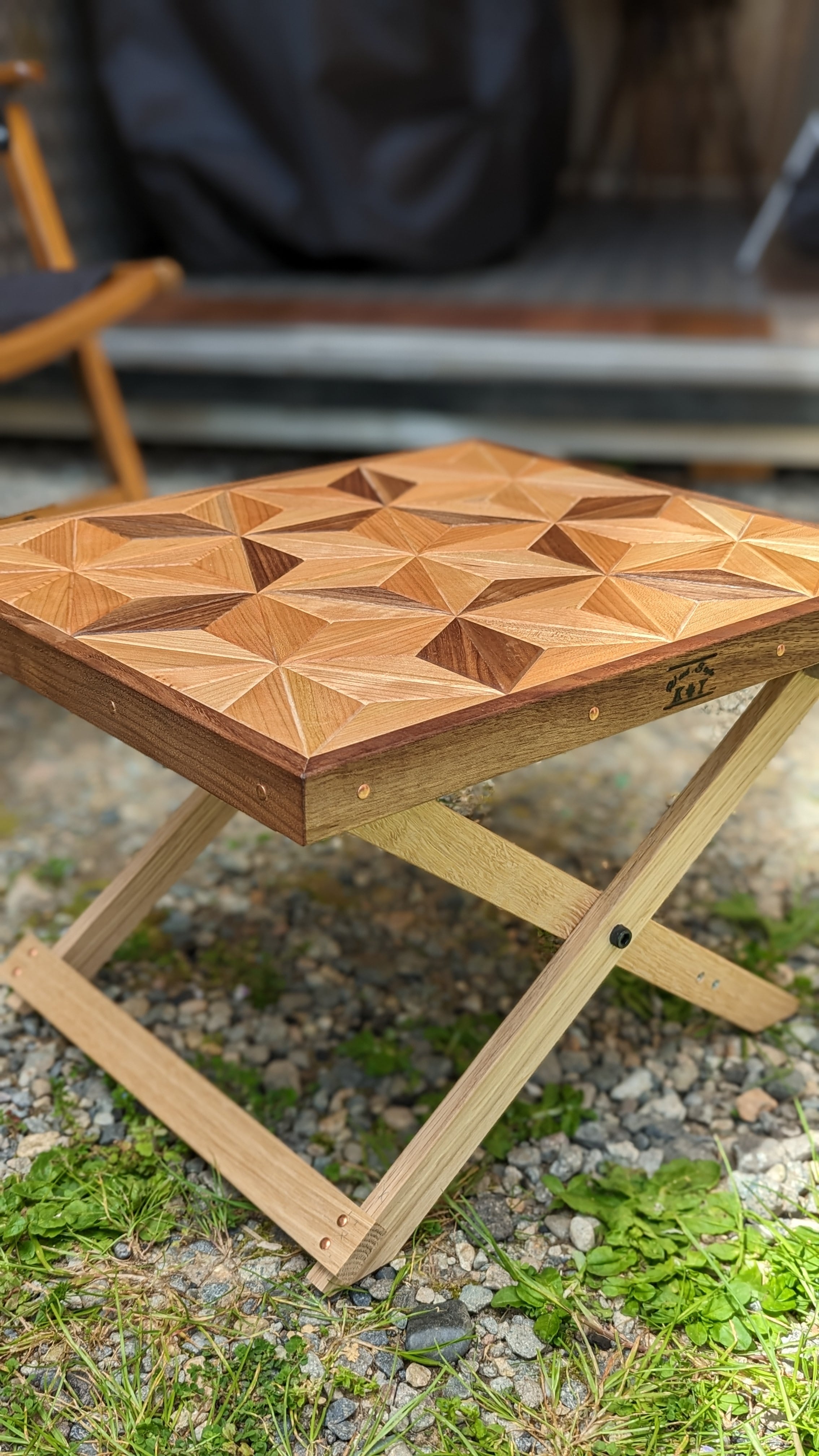 インテリアにもぴったりな麻柄フォールディングテーブルMINI。